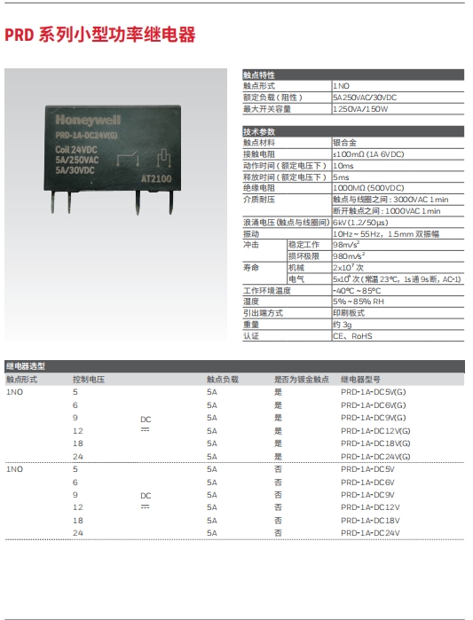霍尼韋爾PRD系列小型功率繼電器