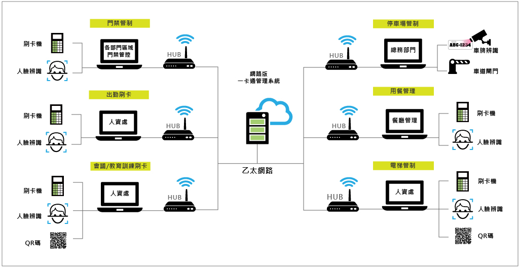 提供園區(qū)訪客管理/門禁管理含人臉識別、考勤、用餐、電梯、車牌辨識、員工識別證,統(tǒng)一建檔及發(fā)卡權(quán)限管理平臺,藉由一卡通平臺整合,加速及準(zhǔn)確布防門禁、考勤管理。