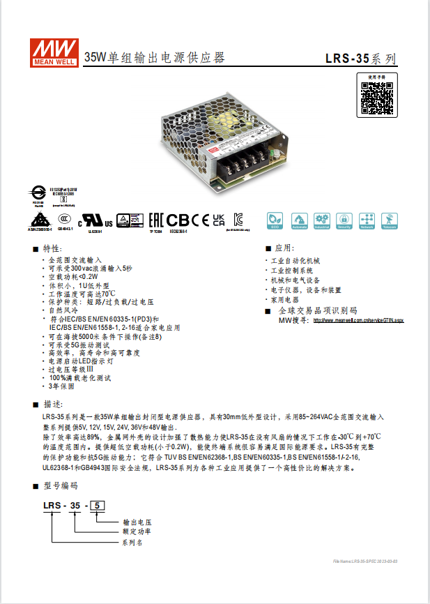 瓦數(shù): 35W~350W 功能特性 無(wú)PFC功能,經(jīng)濟(jì)型機(jī)型 小型化及1U低高度(30mm)