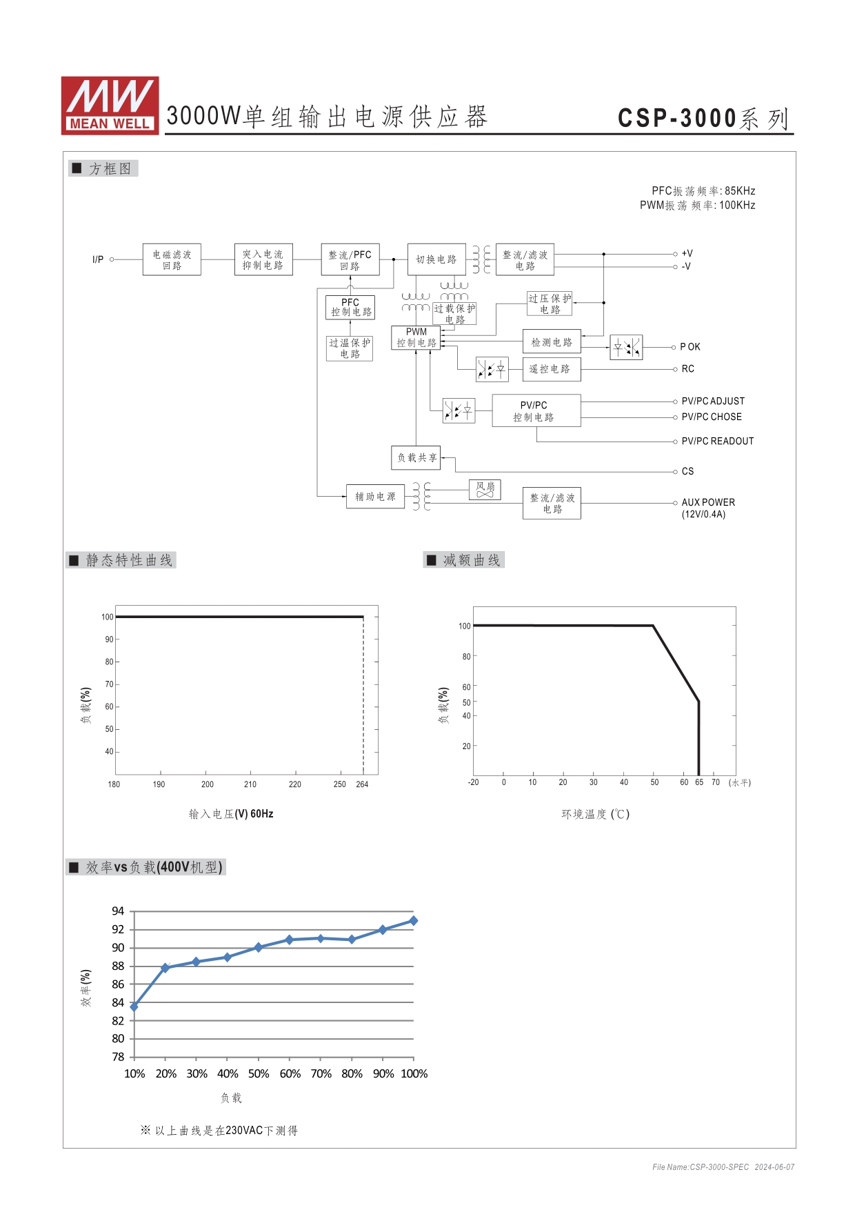 180~264VAC交流輸入 內(nèi)置主動式PFC功能 高效率達93% 內(nèi)建直流風(fēng)扇強制氣冷 可程序化輸出電壓/電流 主動式均流設(shè)計達9000W(2+1) 內(nèi)建遠程開關(guān)控制 /輔助電源/輸出OK訊號 保護種類:短路、過電流、過電壓、過溫度、風(fēng)扇失效 5年保固