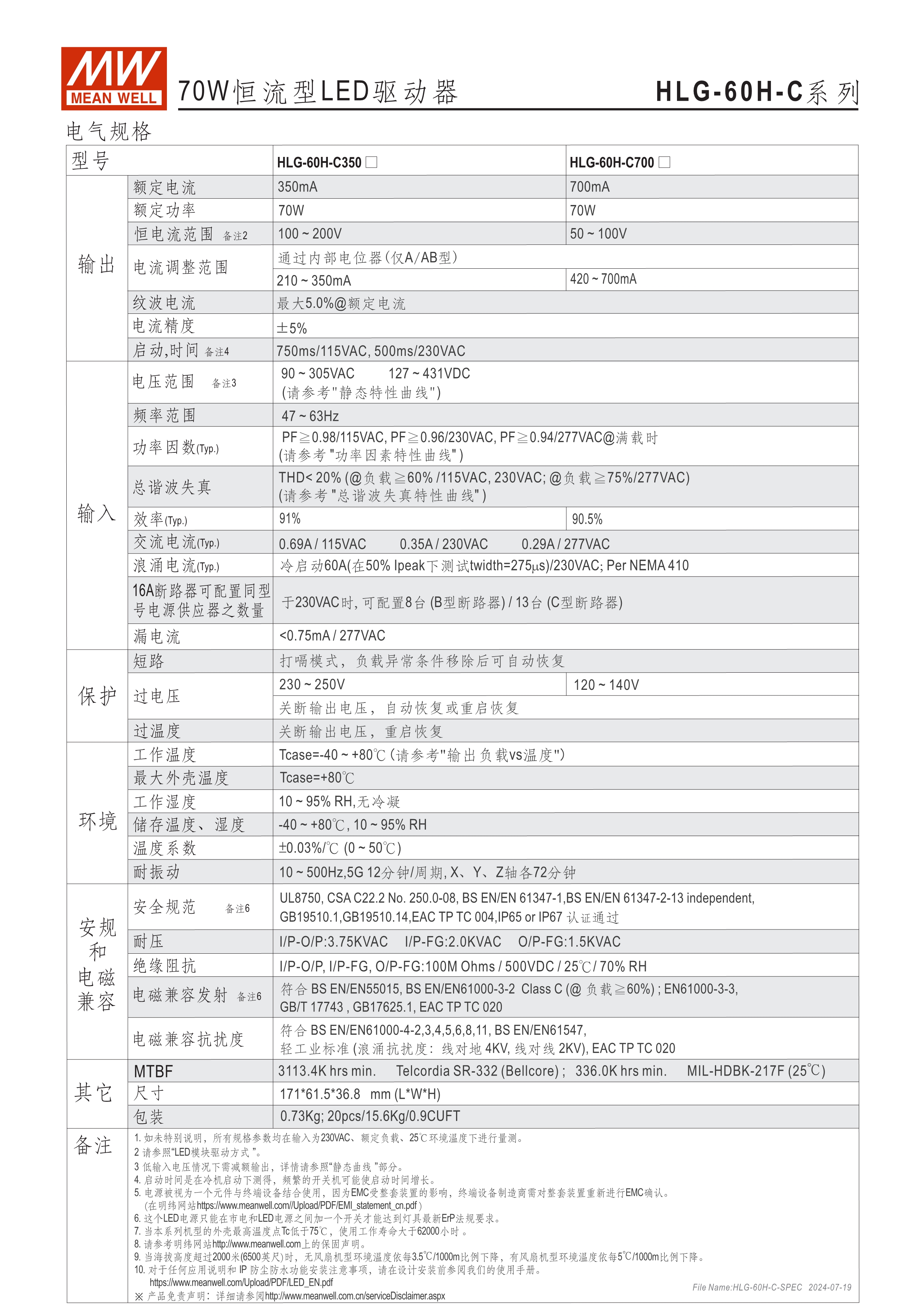 90~305VAC交流輸入,內(nèi)建主動式功率因子矯正功能(active PFC) 高壓(大于60VDC)恒流輸出機種 金屬外殼,IP67/IP65防護等級可用于戶外與室內(nèi) 功能選項 : 輸出可經(jīng)由電位器調(diào)整;三合一調(diào)光(1~10Vdc或10V PWM信號或電阻);定時調(diào)光;智能定時調(diào)光 Type "HL" LED電源適用在安裝于Class I, Division 2 類 危險地點之照明燈具 (僅HLG-240H-C/320H-C) 適合于LED路燈及戶外LED照明等應(yīng)用 7年保固期