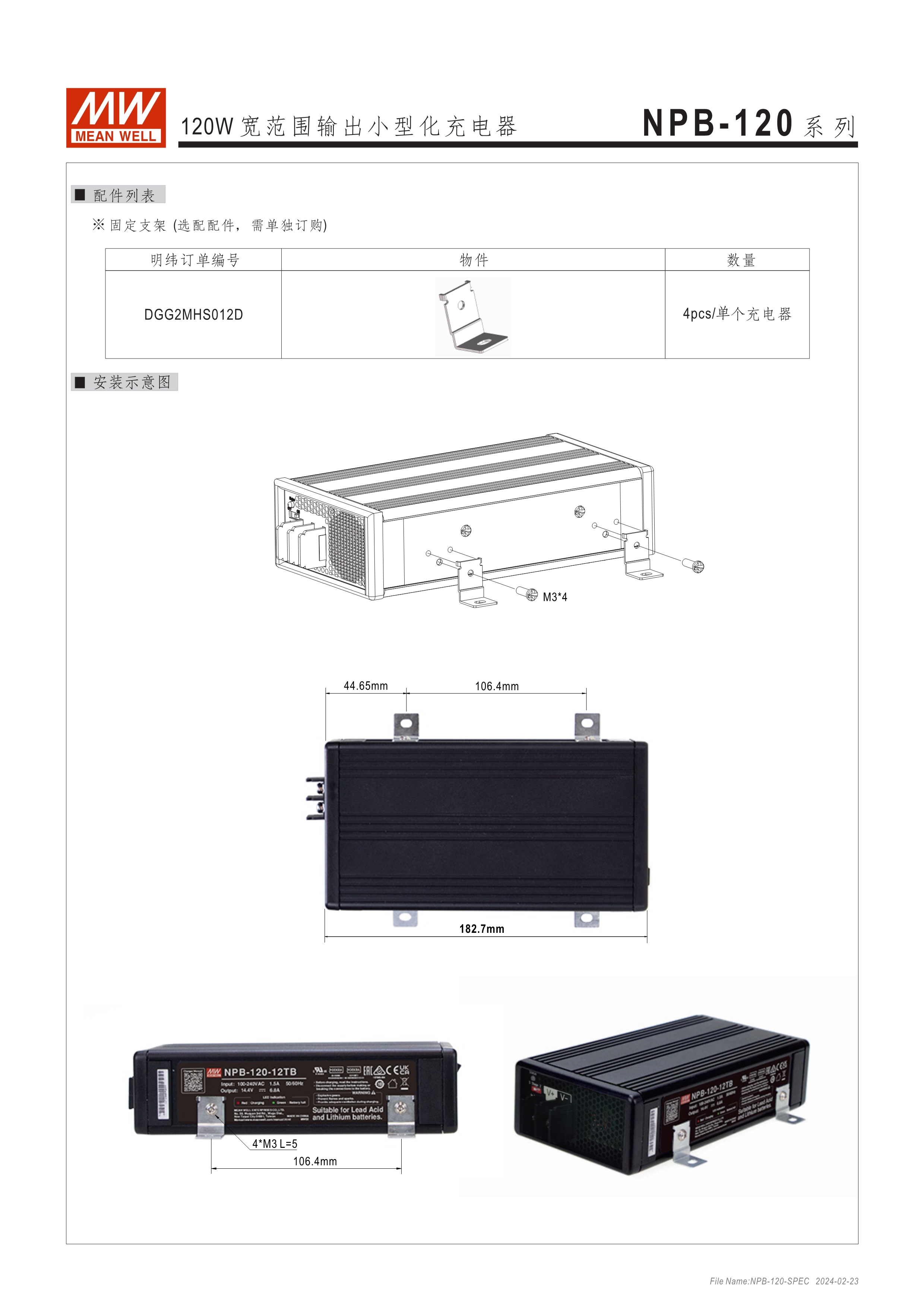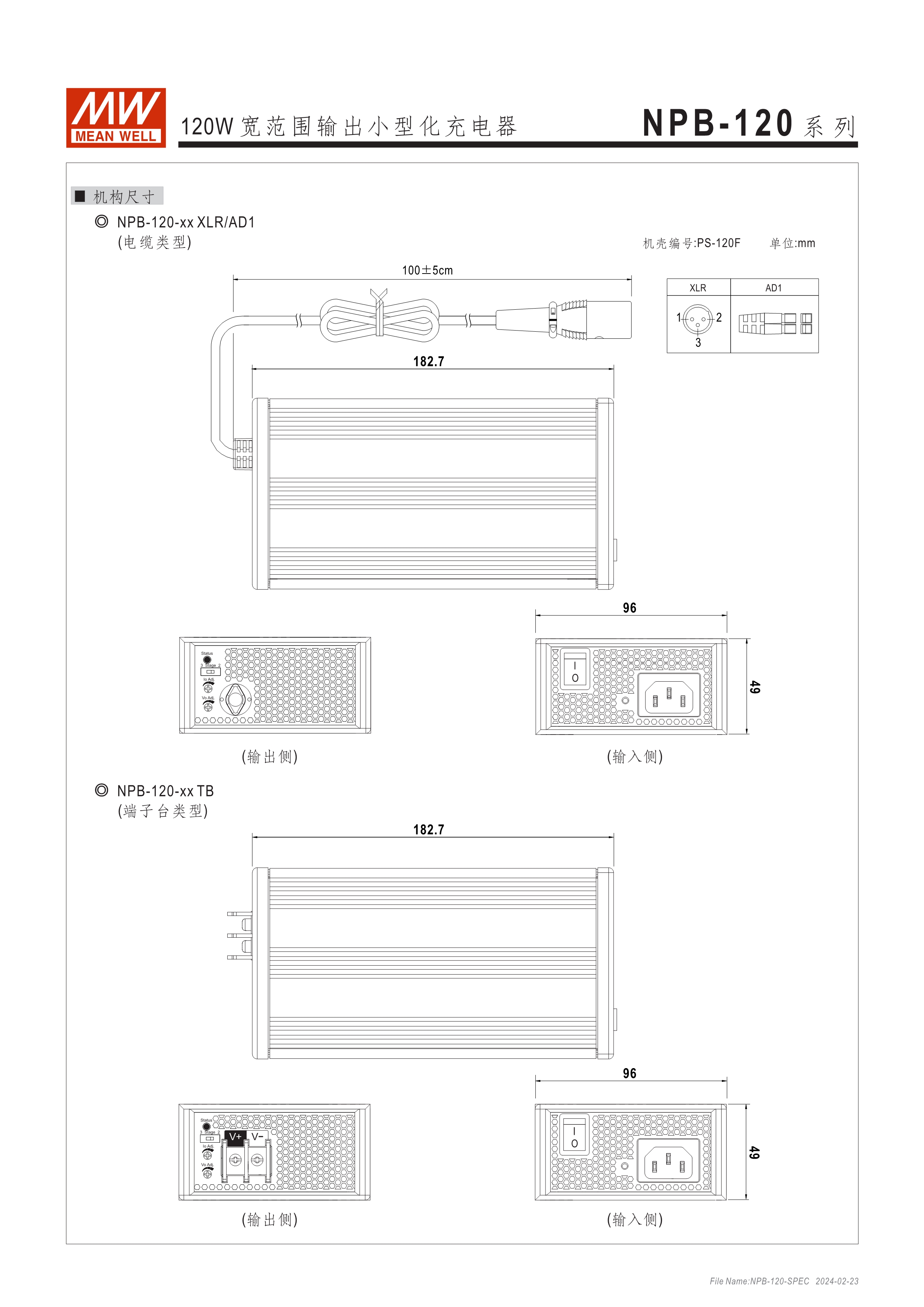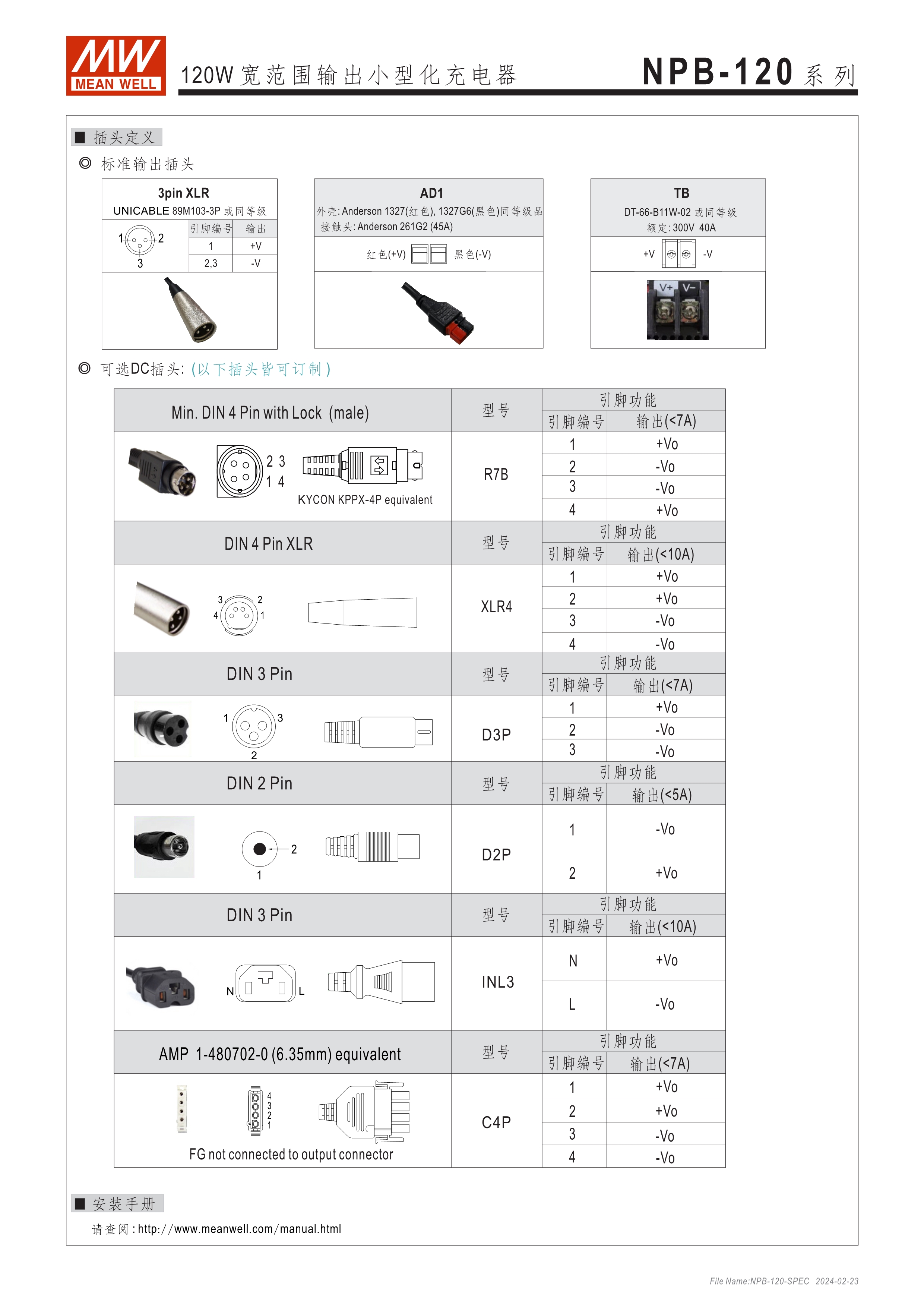 基礎(chǔ)型可靠耐用寬壓充電器 金屬殼散熱快、使用不燙手 可調(diào)功能簡便、使用彈性高: ? 可調(diào)充電電壓 (由面板調(diào)整10.5~15.2V, 21~30.4V, 42~60V) ? 可調(diào)充電電流 (由面板VR調(diào)整50~100%) ? 透過面板DIP Switch可選2段或3段充電 保護功能:短路、過壓、過溫度、電池反極性保護 通過UL/EN62368-1及IEC60335-1/2-29雙安規(guī)認(rèn)證 DC輸出接頭多樣可選:Anderson、麥克風(fēng)頭、端子臺 3年保固