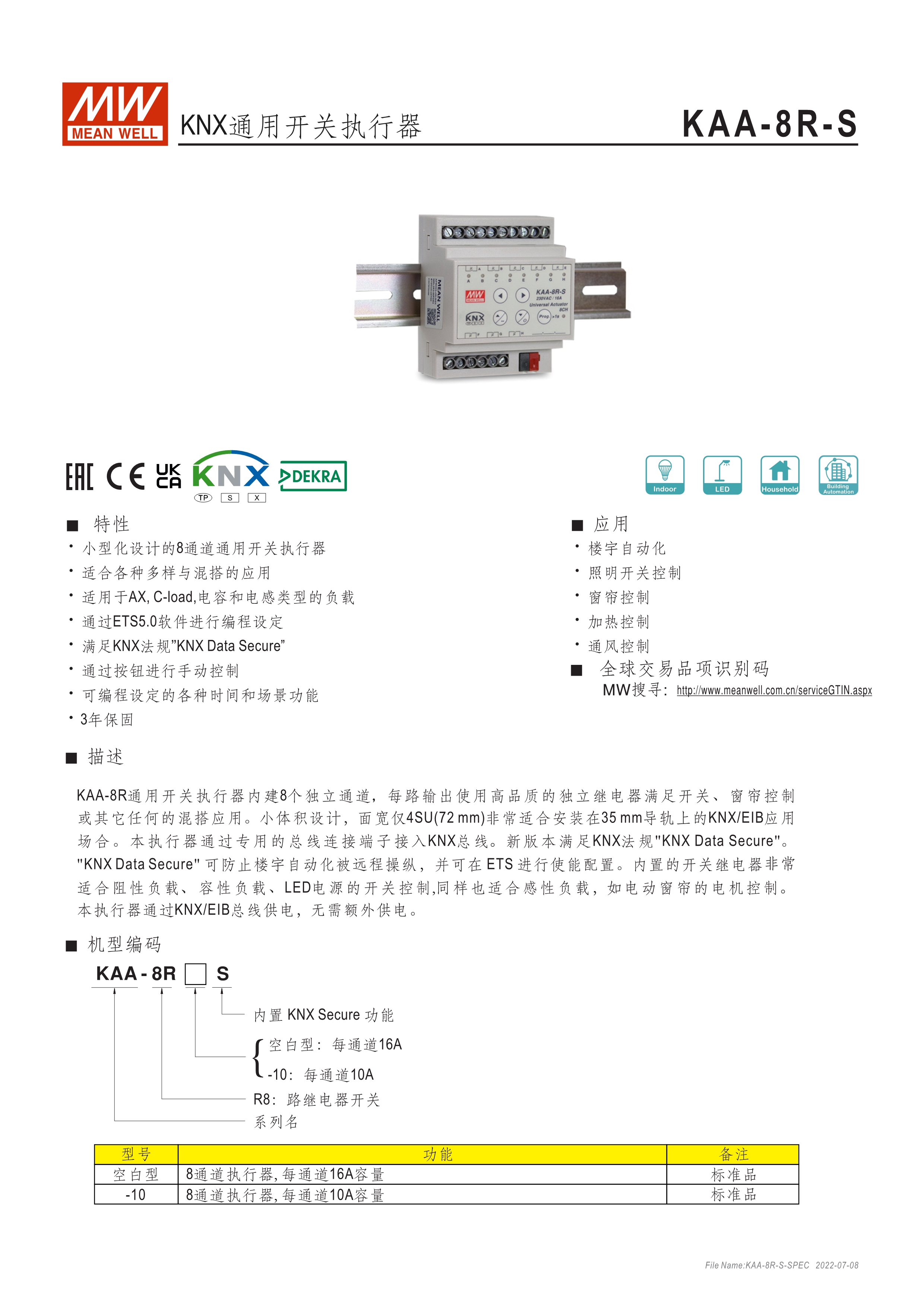 8通道小型化設(shè)計(jì)執(zhí)行器 適合于各式應(yīng)用與混搭模式 適用于AX,C-load,電容和電感類型的負(fù)載 通過(guò)ETS5.0軟件編程 可通過(guò)按鈕進(jìn)行手動(dòng)控制 可編程各種時(shí)間和場(chǎng)景功能 3年保固