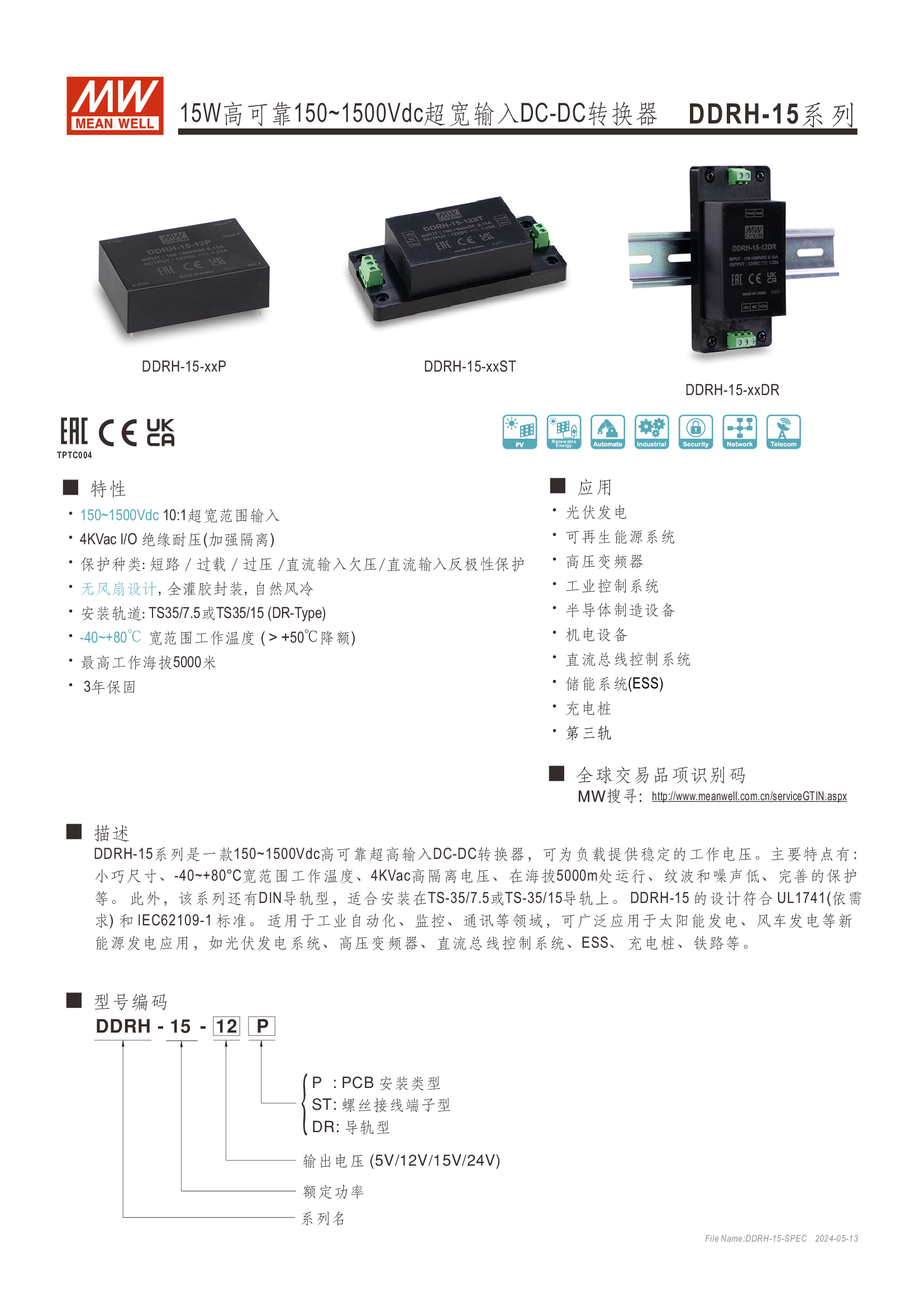 多種安裝方式可供選擇(基板型、端子式和導軌式) 10:1 超寬輸入范圍 內(nèi)部灌膠,提供防塵和防潮保護 超寬溫度范圍:-40℃~+80℃ 保護功能:短路保護、超載保護、過電壓保護、輸入電壓過低及極性反接保護 3年保固