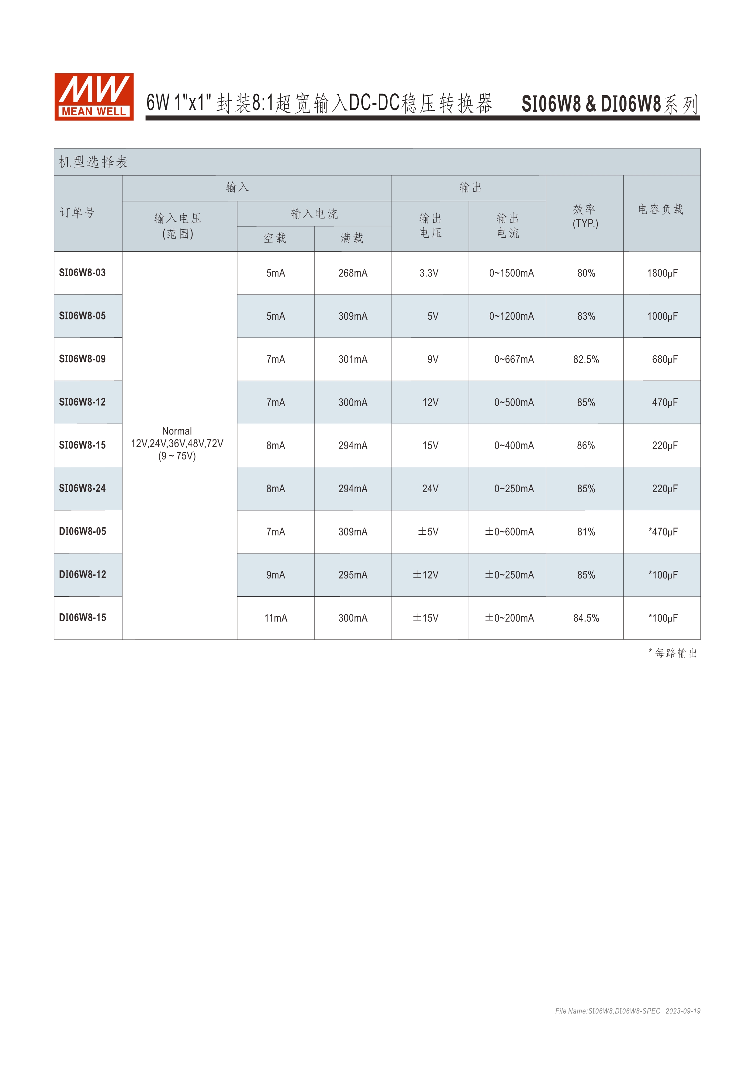 模塊型快選表 DIP封裝 輸入/輸出隔離—1.5KVDC 擁有單組輸出機種 遙控功能, ±10%輸出調節(jié)